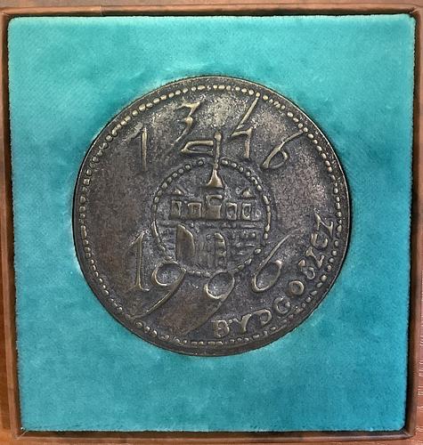 Medal dla Jerzego Godziszewskiego z okazji 650-lecia nadania praw miejskich miastu Bydgoszcz.