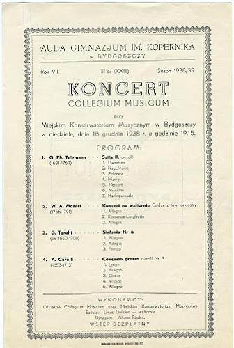 - Koncert Collegium Musicum Miejskiego Konserwatorium Muzycznego (1938) Afisz Szczegóły