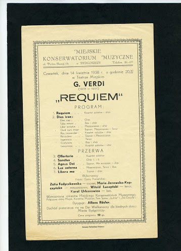 Koncert Miejskiego Konserwatorium Muzycznego "Requiem" Verdi (1938)