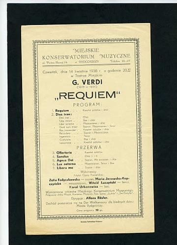 - Koncert Miejskiego Konserwatorium Muzycznego "Requiem" Verdi (1938) Afisz Szczegóły
