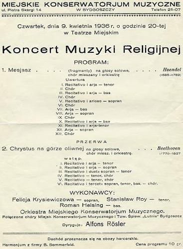 • Koncert Muzyki Religijnej Miejskiego Konserwatorium Muzycznego (1936) Afisz Szczegóły